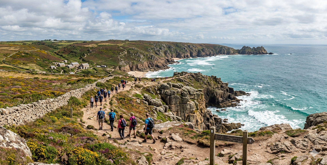 630 miles of coastal trail from Minehead to Poole. The Penwith Peninsula and sections around Fowey are particularly rewarding for trail running.